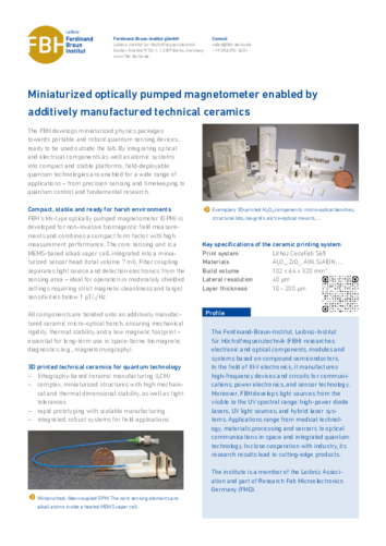 Miniaturized optically pumped magnetometer enabled by additively manufactured technical ceramics