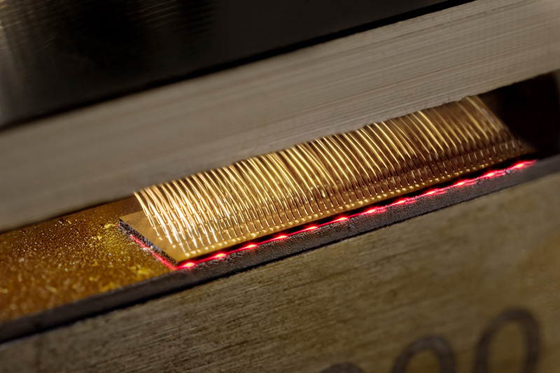 Laser bars consist of several broad-area lasers arranged laterally into a single component. It is thus possible to achieve an output power of more than 1500 W from a single source. Laser bars are used to pump solid-state, fiber and alkali-gas lasers (e.g. space applications and high-energy-class solid-state laser systems). They are also used in direct material processing, e.g. as sources for spectral beam combined systems. Other applications include free-space communications, printing and medical technology.