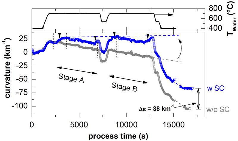 In conclusion, in-situ curvature measurements are well suited for optimizing overall strain as well as the strain distribution across complex layer structures.