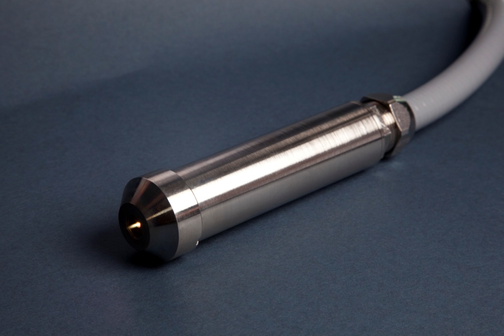 This is presently the only plasma source worldwide which uses a GaN transistor for power generation. The supply voltage is only 24 V and the oscillator delivers a power of approximately 10 W to the plasma. Inside the source, the microplasma achieves a temperature of more than 1200°C which is significantly higher than for example at barrier discharges and enables interesting plasma chemical applications. Nevertheless, the temperature at the treatment location outside the source is lower than 60°C.