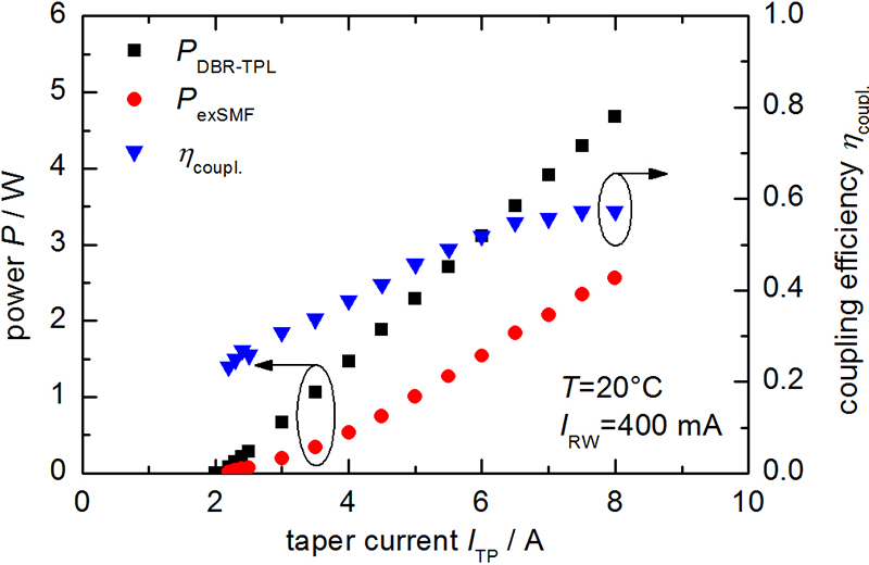 D. Jedrzejczyk, P. Asbahr, M. Pulka, B. Eppich and K. Paschke, "Coupling of DBR tapered diode laser radiation into a single-mode-fiber at high powers", Proc. SPIE, vol. 8965, Photonics West, San Francisco, USA, Feb. 1-6, 89651A (2014).
