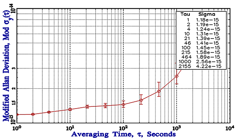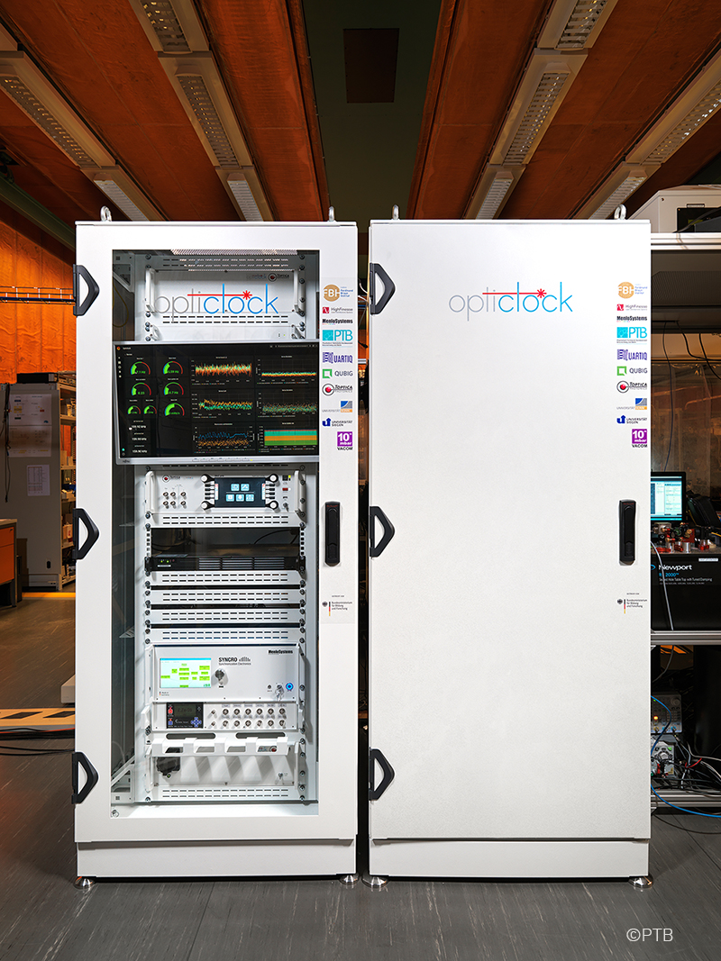 The optical reference system was then integrated into the Opticlock rack system in the clock hall at Physikalisch-Technische Bundesanstalt (PTB). The frequency stability of the laser locked to the ULE cavity was compared to a superior reference laser [4] via an optical frequency comb. A modified Allan deviation of better than 1.5 × 10-15 for an averaging time between 1 s and 100 s has been demonstrated (see Fig. 3). Currently, the driving electronics of the clock laser is being optimized by Menlo Systems in order to achieve reliable long-term operation of at least one week.