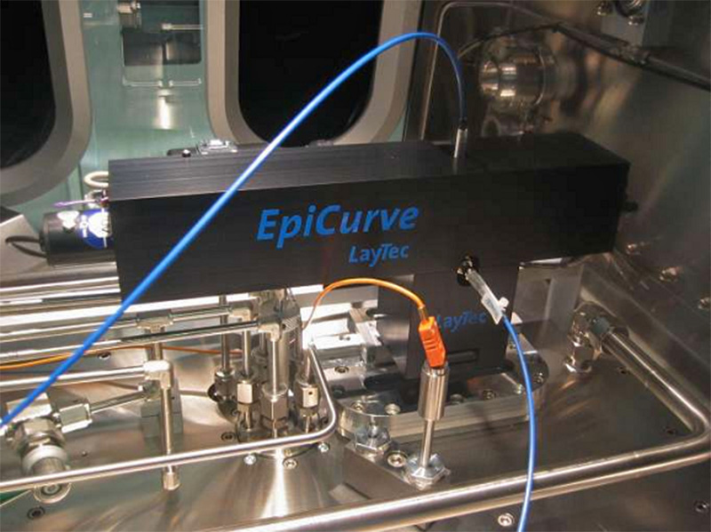 The manufacture of such devices is troubled by a considerable bow of the semiconductor wafers. The different lattice constants in GaN and (Al,In,Ga)N compounds as well as the thermal expansion mismatch between GaN and the substrate materials sapphire (for LEDs) and silicon carbide (for transistors) cause wafer curvature or even cracking. Here, the amount of bow depends on the thickness of the epitaxial layers (some micrometers) and the size and thickness of the used substrates. This curvature can for example cause significant inhomogeneity of the emission wavelengths of LEDs as well as laser diodes over a wafer [1]. Therefore, understanding and control of wafer curvature are decisive to obtain a flat wafer with a homogeneous temperature distribution in the epitaxial growth process when the light-emitting active region is deposited.