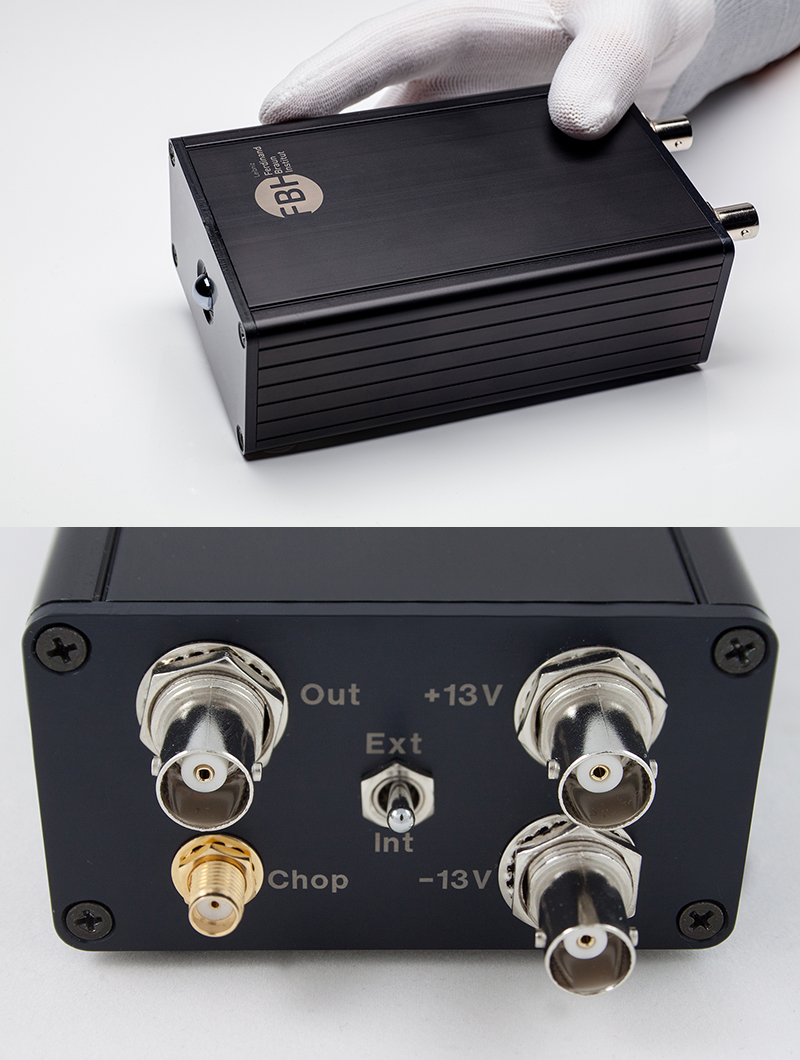 Fig. 1: Ready-to-use THz detector in housing with electrical interfaces on the backside.