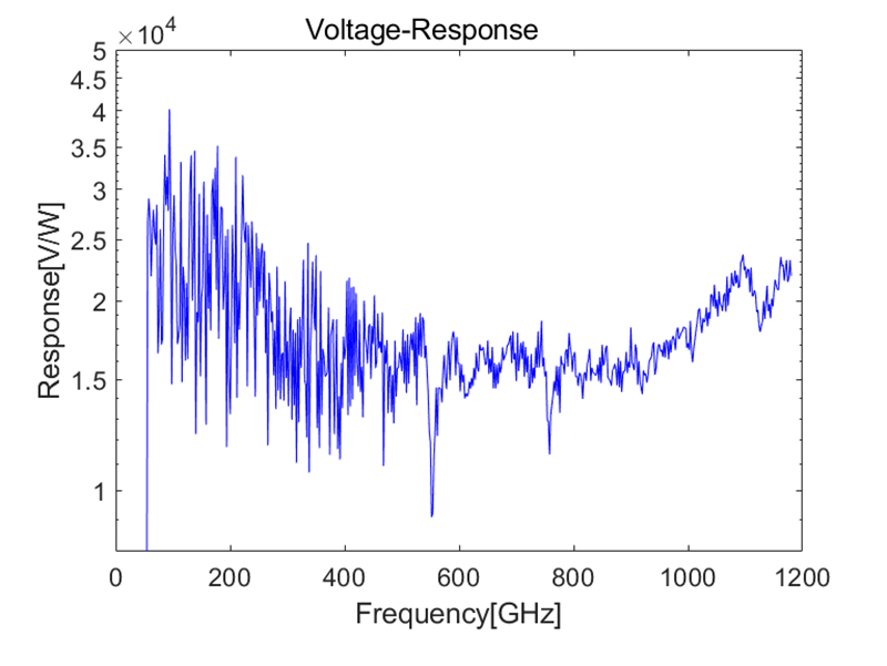 Fig. 2: Broadband responsivity of the THz detector with a log-spiral detector structure.