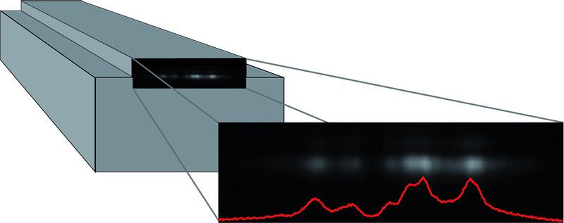 Blue (Al,In)GaN-based laser diodes are used in various commercial applications. However, high-power lasers often show severe intensity fluctuations in the lateral beam profile due to their broad emitting area (cf. Fig. 1). The fluctuations are caused by inhomogeneities of the refractive index, e.g., because of an inhomogeneous carrier density or temperature. The phenomenon known as filamentation has been investigated at the FBH for several laser bars from one epitaxial wafer.