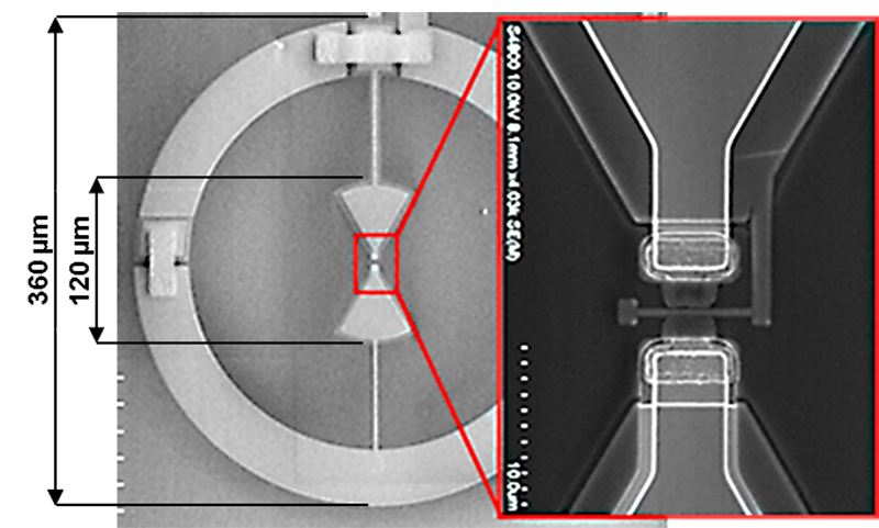 Fig. 1: Single bow-tie detector with GaN HEMT close up view