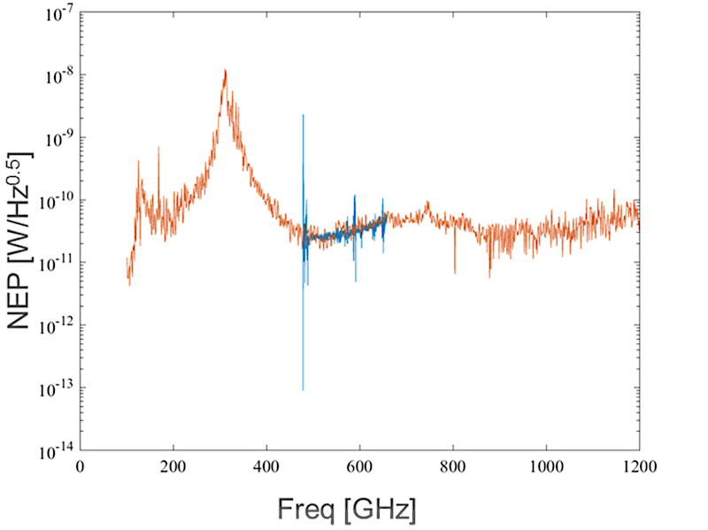Fig. 2: NEP measurement of a single THz detector vs. frequency