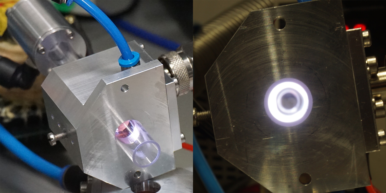 The new miniature source developed at FBH combines the advantages of the inductive coupling and the microwave excitation. Among the many prospective applications there are industrial ones (e.g., thin-film deposition) as well as medical ones (e.g. skin treatment).