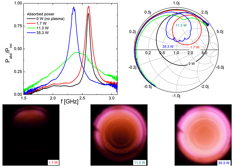 But the magnetic excitation has also disadvantages. The currents do not flow on a predefined path like in the winding of a transformer. Therefore many modes may be excited. We study these modes using microwave “Hot-S” parameter measurements and optical emission spectroscopy, and correlate them with photographs of the plasma.