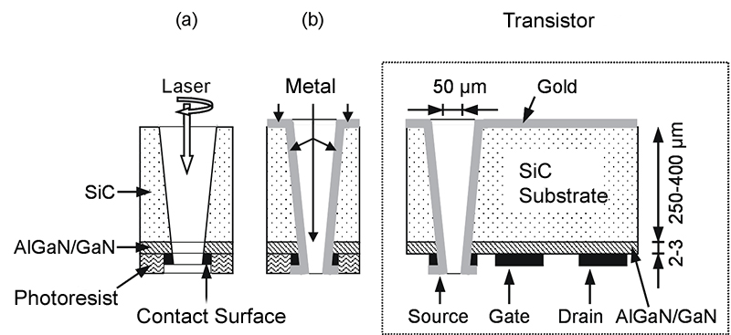 Laser-assisted fabrication of vertical interconnects for AlGaN/GaN power transistors