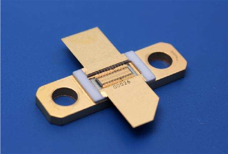 The development of GaN microwave power transistors is one focus area of the FBH. Such transistors consist of several cells, comprising several fingers each, and are soldered in a package (Fig. 1). Therefore, the power bars are relatively large and complex structures. The question to what degree the single cells are operated in-phase and the power distribution is homogeneous over the cells is decisive for the available output power and efficiency. In order to analyze and understand the interaction of the power bar’s parts, we developed a distributed electro-thermal network model for our power transistors.