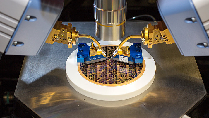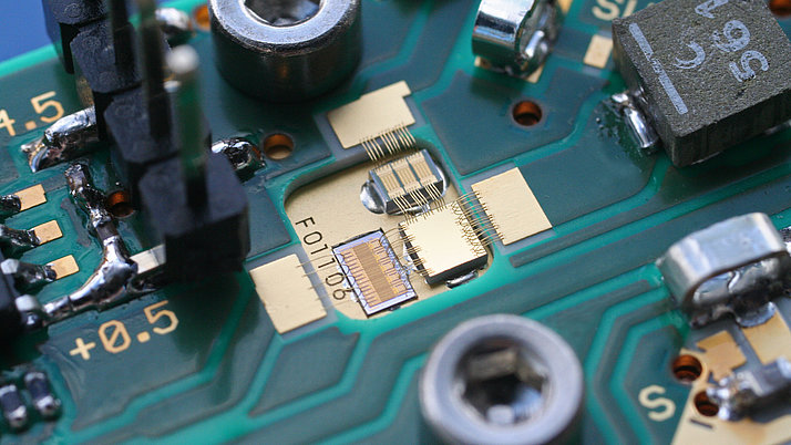Das übergreifende Ziel der Forschungsarbeiten des FBH im Bereich III/V-Elektronik ist, die Grenzen der elektronischen Bauteile hinsichtlich effizienter Leistungserzeugung bei hohen Frequenzen, hohen Spannungen, besserer Rauscheigenschaften und kurzer Schaltzeiten systematisch zu erweitern. Wir decken dabei das Frequenzspektrum vom unteren GHz-Bereich über die Mobilfunkfrequenzen bis hin zu Millimeterwellen und Terahertz-Frequenzen ab. Anwendungs- und frequenzspezifisch greifen wird dabei auf unsere dedizierte GaN-HEMT- oder InP-HBT-Technologie zurück.