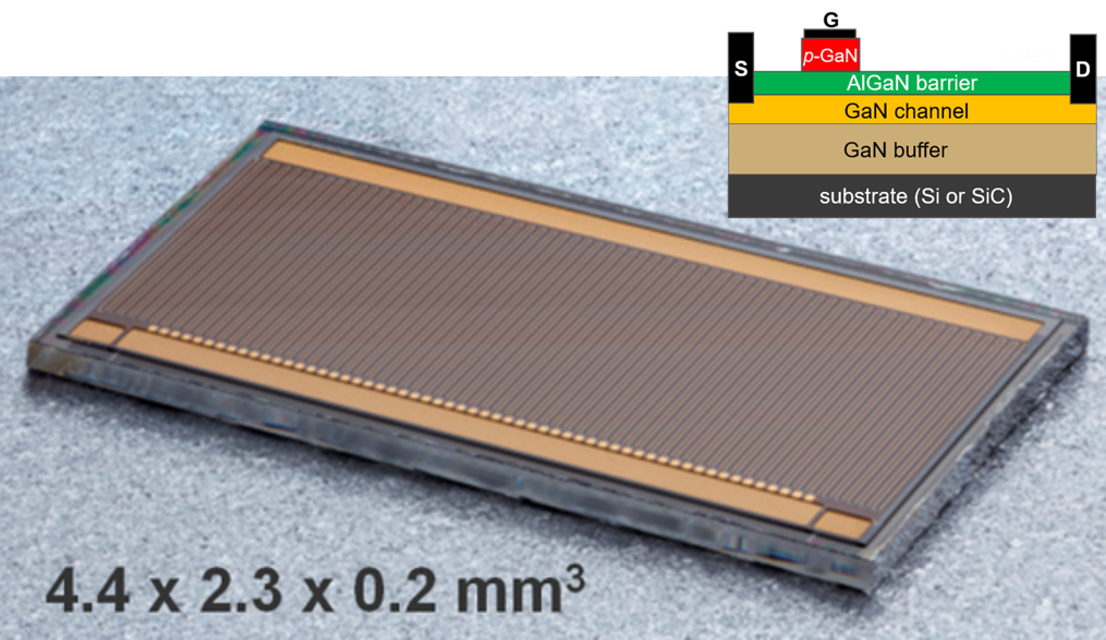 Monolithisch integrierte GaN-Halbbrücken realisieren wir auf Basis der Technologie der selbstsperrenden p-GaN Gate-Transistoren.
