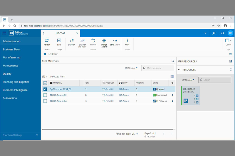 Das FBH nutzt eine kommerzielle MES-Software und hat diese auf die Erfordernisse einer anwendungsorientierten Forschungseinrichtung angepasst: Damit lassen sich nun etablierte Fertigungsabläufe ebenso wie stark variable, von Testserien geprägte Forschungs- und Entwicklungsarbeiten abbilden. Auf diese Weise sichern wir die Qualität und erhalten uns die nötige Flexibilität. Das FBH baut damit seine Stärken in der Forschung und Herstellung von elektronischen und optischen Bauelementen bis hin zur Fertigung von Pilotserien weiter aus.