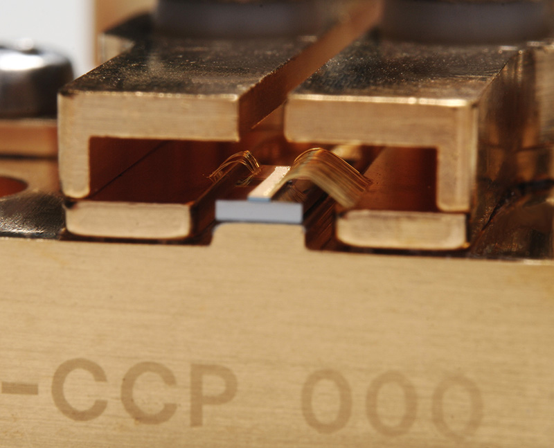 - Mehrschritt-Epitaxie: Nach dem ersten Epitaxieschritt Einbringen eines Bragg-Gitters zur Frequenzstabilisierung mit holografischer Lithografie und nasschemischem Ätzen in den Wellenleiter, anschließendes Überwachsen der strukturierten Oberfläche