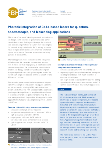 Photonic integration of GaAs-based lasers for quantum, spectroscopic, and biosensing applications