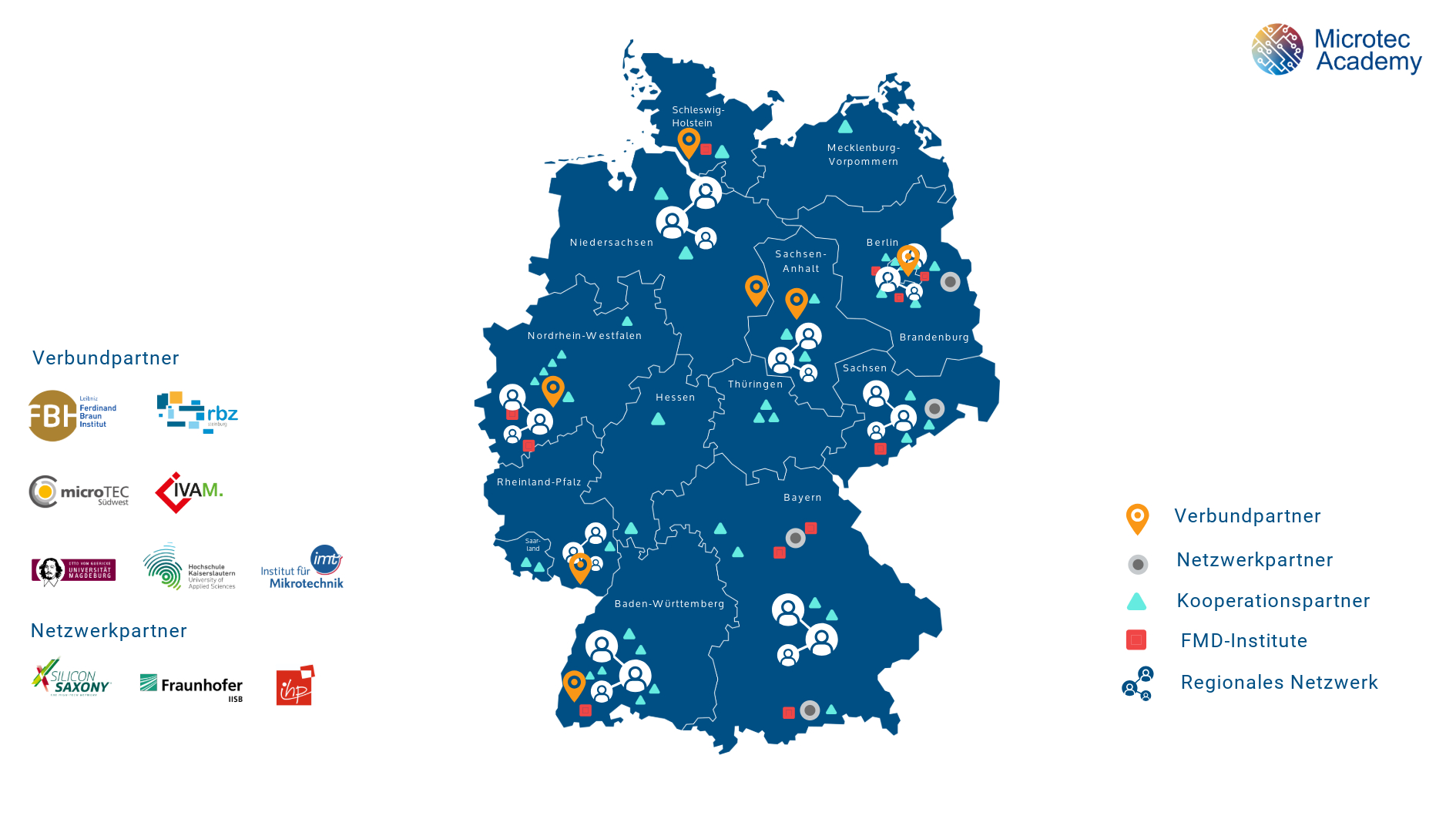 Das Projektkonsortium besteht neben dem FBH aus sechs weiteren Verbundpartnern, die unterschiedliche Expertise einbringen: dem regionalen Berufsbildungszentrum des Kreises Steinburg, dem Institut für Mikrotechnik der Technischen Universität Braunschweig, dem Fachbereich Informatik und Mikrosystemtechnik der Hochschule Kaiserslautern, der Otto-von-Guericke-Universität Magdeburg, microTEC Südwest e. V. sowie dem IVAM Microtechnology Network. Weitere Kooperations- und Netzwerkpartner aus ganz Deutschland wie die Forschungsfabrik Mikroelektronik Deutschland (FMD) und Silicon Saxony unterstützen das Leitprojekt, um die Fachkräftesicherung in der Mikroelektronik und Mikrosystemtechnik voranzutreiben.